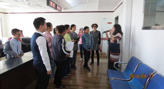 首先,张开宇老师带领大家参观每个实训室的同时,一一讲解每个实训室的具体布置和它的功能。小同学们平时和爸爸妈妈去银行办理业务,在日常生活中接触最多的是政务大厅,对实训室的政务大厅倍感亲切。通过对实训室的参观,小同学们也切身感受到职业教育将企业搬进校园的特点。