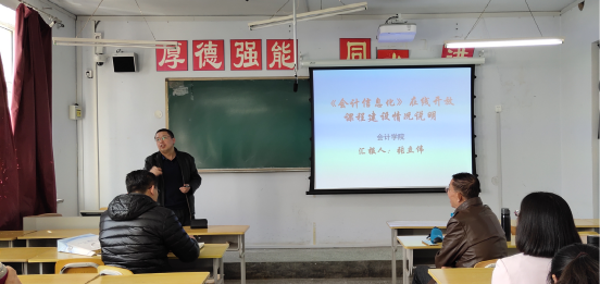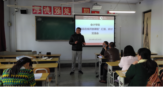 在教育厅大力推进“吉林省精品在线开放课程认定”工作的背景下,为进一步推动我院在线开放课程建设与应用,不断深化信息技术与高职教育教学深度融合,促进数字化优质教学资源共建共享,深入推进以学生为中心的课程改革、教学方式与学习方式变革,实现我院教师教学能力、教学质量的全面提升,4月10日下午,会计学院全体教师在A教学楼403举行了“精品在线开放课程”汇报、交流研讨会,研讨会由会计学院院长盛立军主持。