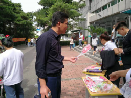 在这次活动中,学院领导在苏书记的带领下,积极献爱心,现场捐款,带动了全院师生纷纷慷慨解囊。会计学院领导班子全体成员亲自到现场进行爱心宣传、捐款,得到了全体教职工的积极响应,掀起了捐款的热潮,过往的老师和同学都纷纷献上自己的一份爱心,浓浓的爱在吉林省经济管理干部学院的校园弥漫开来。