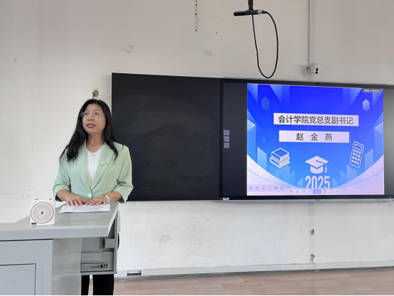 会计学院党总支副书记赵金燕就学生管理工作的相关规定为家长们进行了全面而细致的解读。赵书记首先强调了大学生遵守规章制度、养成良好的学习生活习惯的重要性。她指出,科学合理的管理规定是保障学生健康成长、顺利成才的基础,旨在为学生创造一个安全、稳定、有序、积极向上的学习和生活环境。赵书记表示,学院的学生管理工作始终坚持“以生为本”的原则,严格管理与人文关怀并重。她希望家长们能够与学校保持密切沟通,协同育人,共同关注学生的思想动态、学业进展和身心健康,助力学生度过充实而美好的大学时光。