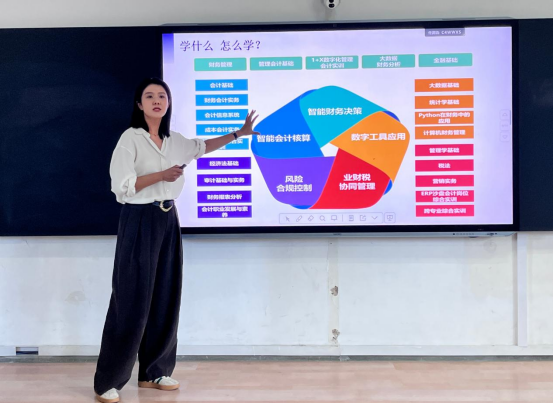 财务管理教研室主任刘骅老师从专业定位与特色、就业方向广阔、课程体系与实战能力、专升本与深造路径这四个方面作大数据与财务管理专业介绍,她指出,随着数字经济的快速发展,大数据技术在财务管理领域的应用日益广泛,课程设置涵盖财务管理、大数据财务分析、智能决策等核心内容,注重理论与实践相结合。该专业致力于培养懂财务、会分析、能管理的复合型人才。