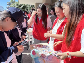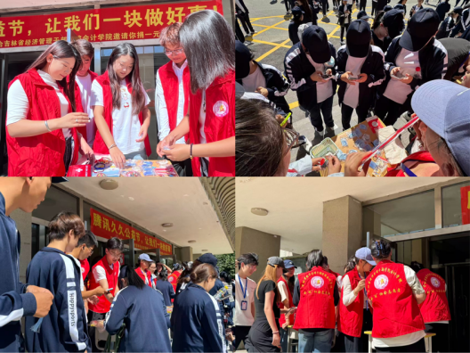 新智学校的副校长杨微、成人部主任刘海霞和幼儿部主任王佳老师带着孩子们亲手制作的各式纪念品邀请广大师生一块儿做好事。会计学院院长、会“技”协会总指挥林冬梅,党总支书记南洪吉,党总支副书记赵金燕以及社团总教练辛悦、社团教练战海月与卞云超、团总支书记刘乙桥、辅导员宫博文、会“技”协会社委会成员们带头认捐,并共同宣传、号召师生通过认捐一元领礼品关爱星星的孩子。会计学院领导与师生以实际行动展现了跨越界限的爱,共同编织了一幅温暖人心的画卷,这份爱如同秋日暖阳,不仅温暖了孤独症孩子,也激发了更多人心中的善良与责任,公益的力量在此汇聚,让世界因爱变得美好和谐。