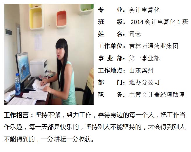 吉林万通药业集团山东滨州主管会计兼经理助理司念