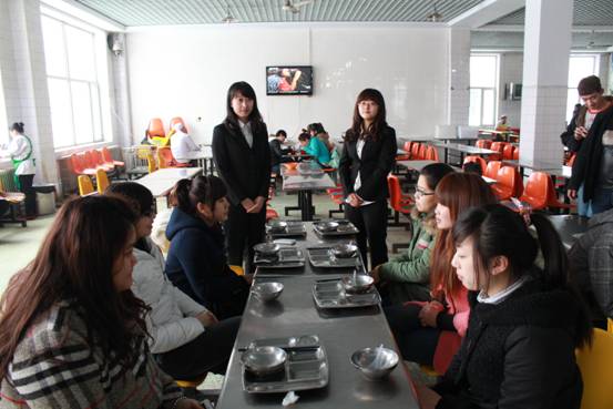 3月26日午餐时间刚到,食品安全技术学院生活部部长杨璐、孙佳以及学生会部分成员,就身着正装来到食堂,对正在准备用餐的同学进行“光盘”宣传和引导。同学们积极响应号召,按自己所需用餐,一改以往攀比用餐、用面子餐的不良习惯。