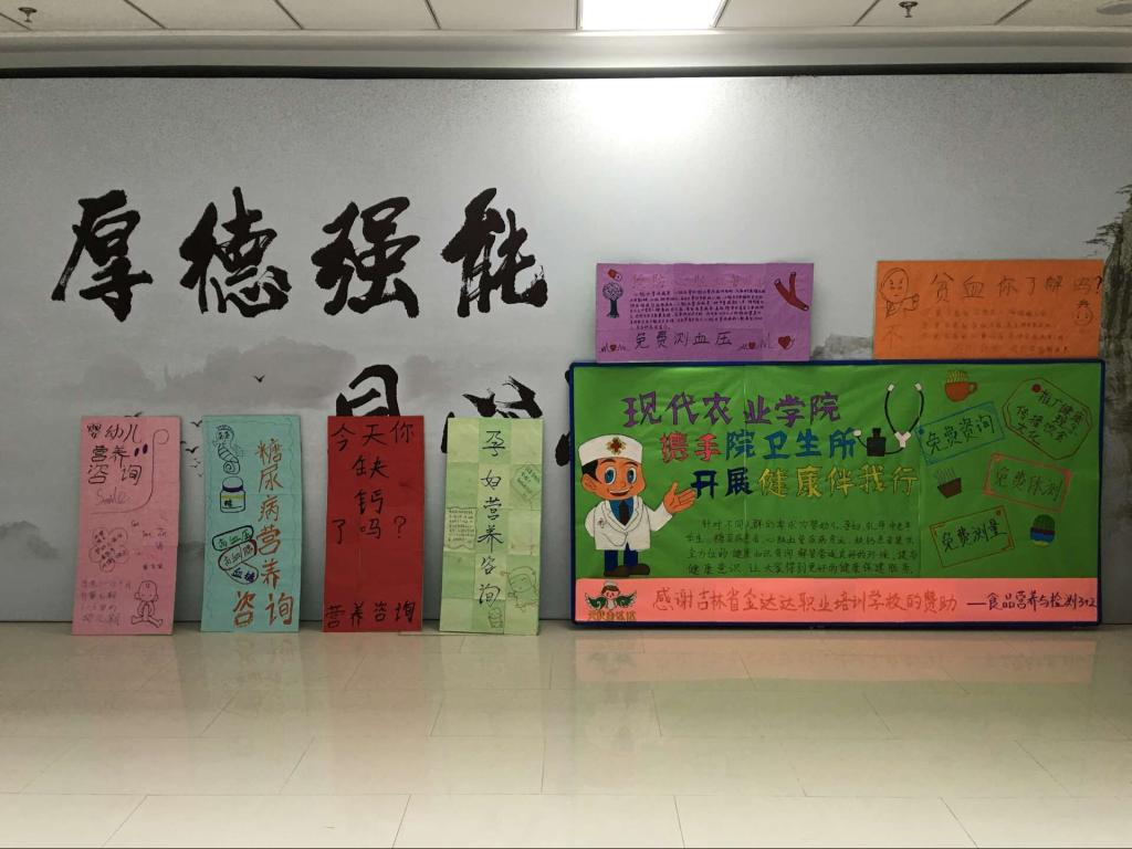 为推广健康理念、传播饮食文化,进一步巩固和提高学生营养与健康相关专业知识及实践技能,现代农业学院于2016年12月12日-12月16日,在高新教学楼一楼开展了为期一周的“健康伴我行”人群营养与健康咨询活动。