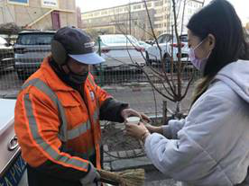 学生们五点半在宿舍冲好奶茶,带好纸杯,结队出发,以学府街、博文路、学海街、蔚山路内的范围,对环卫工人进行了送温暖的活动。虽然已经阳春三月,但是早上的寒风依旧环绕着人们,而环卫工人更早的已经开始了工作。学生们不畏寒冷,把温暖的奶茶送到环卫工人手中,也唠了唠家常。学生们看到环卫工人的辛苦,自己也感受了他们的不易,都表示要学好专业知识,到社会上贡献自己的能力,并且要组织长期性的送温暖活动,使温暖真的送到大家的心中。