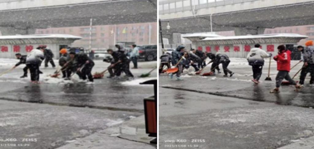 雪花虽大,盖不住同学们的努力和热情,尽管天气寒冷,同学们全然不顾,拿起扫雪工具,铲除学校主干道和校门口积雪,一个个争先恐后,干劲十足,为学生清出一条安全通道。同学们的双手在大雪中冻得通红,心却因为师生们的安全出行而变得温暖。经过一个多小时的奋战,大家终于将校园的主干道等地的积雪全部铲除,为师生们开辟了一条洋溢着温情的通畅之路。虽然同学们的衣服、鞋子都弄湿了,也出了一身的汗,可看着眼前的成果,每个人的脸上都洋溢着开心的笑容。