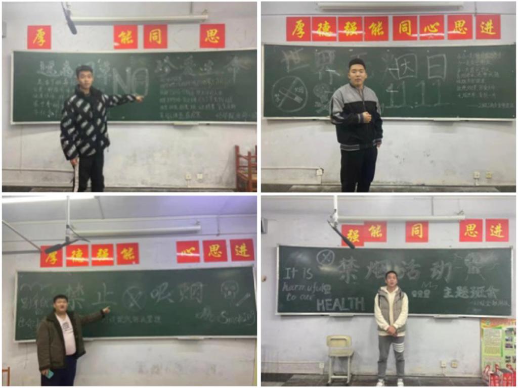 为了让学生充分了解烟草对人体的危害以及吸烟所导致的严重后果,各班班长展开主题班会,强调当下校园“禁烟”的必要性,并通过举例子的方式,给学生敲响警钟,并要求全体学生在建筑物内禁止吸烟(寝室,教室,食堂等);此次活动中,各班级板报设计新颖,内容丰富通过此次团活的开展,让班级将“禁烟运动”落到了实处,进一步推进了校园精神文明建设工作的顺利开展。