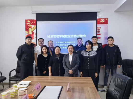 2026年3月10日,吉林省经济管理干部学院经济管理学院与吉林省智优食品有限公司、广州季航传媒集团吉林省分公司、吉林省北正宏途投资有限公司,就数智商贸人才实习实训基地产教融合一体化建设举行深度合作洽谈会。经济管理学院宋晖院长、吕超主任、任爽主任及王心语、刘和亲老师出席会议,吉林省智优食品有限公司董事长李显刚,广州季航传媒集团吉林省分公司总经理王兴坤、运营总监王亚洲、商务总监王尚、选品总监孙帅,吉林省北正宏途投资有限公司总经理王秋、商务经理王帅涛等企业代表应邀参会。双方围绕数智商贸人才实训基地产教融合一体化建设实施方案展开深入交流,现场气氛热烈、研讨深入,洽谈取得卓越进展,为后续校企深度合作奠定坚实基础。