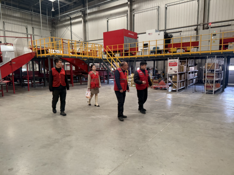 走访过程中,吉林省极兔供应链管理有限公司刘经理热情接待了学院一行,首先带领大家实地参观了极兔自动化货仓、分拣中心及配送调度区,详细讲解了货物从进港、扫码、分拣、复核到出港的全流程运营模式,重点介绍了企业在智能仓储管理、高效物流配送、数字化调度等方面的核心技术与创新举措。参观现场,老师们近距离观察了自动化分拣设备、智能仓储系统的运行过程,仔细询问了货仓日常运营效率、岗位设置、人员需求及职业发展路径,对极兔供应链高效、规范、智能的运营体系给予了高度评价。