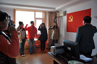 13:00整,在雄壮的国歌声中大会正式开始。四名积极分子怀着无比激动的心情加入了中国共产党,他们纷纷表示一定不辜负党组织的培养,在今后的学习、生活和工作中,一定会继续努力。宣誓由支部委员刘春博领誓,所有党员面向党旗,一侧站定,举起右拳,神情庄严,声音洪亮,重温入党誓词:“我志愿加入中国共产党,拥护党的纲领,遵守党的章程,履行党员义务,执行党的决定,严守党的纪律,保守党的秘密,对党忠诚,积极工作,为共产主义奋斗终身,随时准备为党和人民牺牲一切,永不叛党。”这铮铮誓言,犹如嘹亮的号角,在党旗前久久回荡。