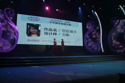 2011年12月1日,由中国丝绸协会、教育部高职高专服装纺织类专业教学指导委员会、杭州市丝绸行业协会等共同承办,金富春集团有限公司冠名赞助,首届“金富春杯”中华嫁衣创意大赛总决赛在杭州广电中心一号演播大厅隆重举行。经大赛评审组的初评以及实景动态拍摄等多项程序严格评审,最终我院艺术设计系服装设计与营销专业教师刘影老师的作品《宫廷嫁衣》获得铜奖,为我院争得荣誉。