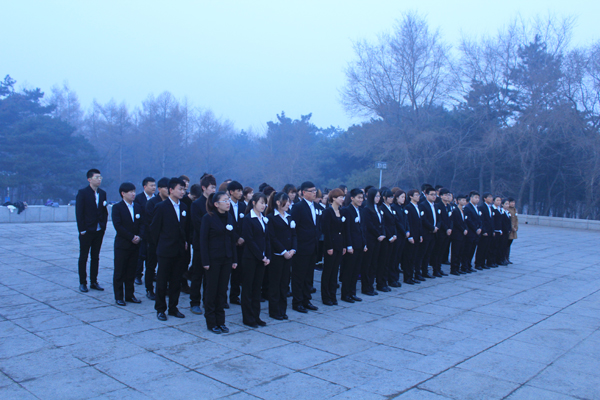 3月26日清早,设计系学生会全体成员在辅导员崔琳琳、李欣的带领下,来到了南湖公园长春解放纪念碑,进行“缅怀革命先烈,努力追寻中国梦”清明节扫墓活动,缅怀那些曾经为了中国革命而英勇牺牲的革命烈士。