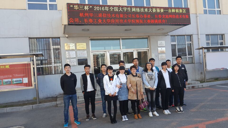 2016年4月28日,由龙旭网络公司主办的一年一度的“H3C杯”全国大学生网络技术大赛——吉林赛区的比赛在长春工业大学林园校区举行。我校数字出版分院计算机应用专业(网络工程师方向)共20名学生在范晓春和林鸿老师的带领下参加了此次比赛。