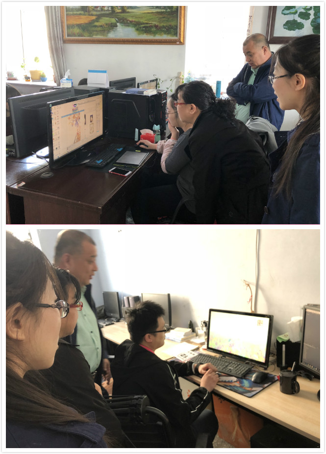 王院长首先简单介绍了智鹏动漫学校的基本情况,然后详细介绍了工作室的业务范畴、运行模式以及管理机制,并带领刘院长等人参观了工作室。工作人员现场演示了插画设计与制作流程以及影视后期制作流程,双方人员就职业岗位技能展开交流学习。最后,双方共同探讨了现代学徒制人才培养模式,王院长对我院数字媒体应用技术专业人才培养方案提出中肯的建议和意见。