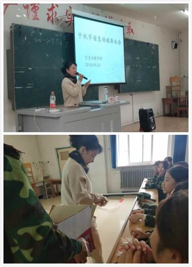 9月24日是重要的传统佳节——中秋节,但对于我校2018级新生而言,也是离家求学后第一个身在异乡的节日。为了让同学们感受到节日的欢乐和集体的温暖,信息传媒学院在A105教室开展了2018级新生中秋联欢活动,信息传媒学院党总支书记周雪娟、团总支书记迟涵、六名助理辅导员以及全体新生参加了本次活动。