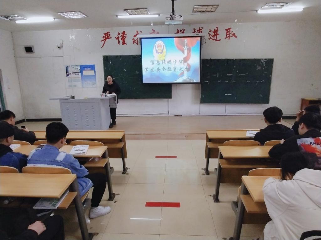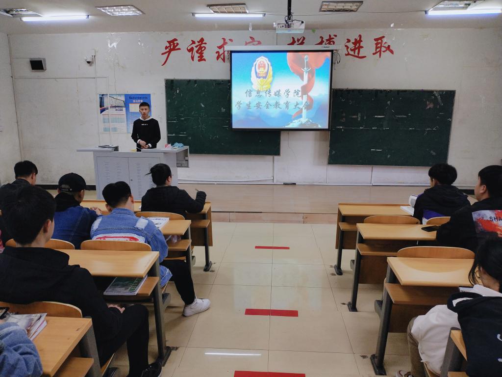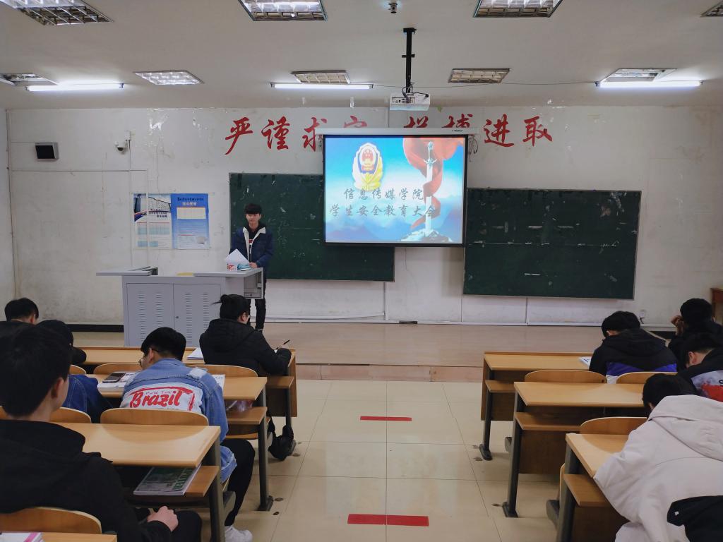 3月11日中午,信息传媒学院在院部A教105室召开学生安全教育大会。大一辅导员刘庆老师、学生会成员及大一全体学生参加了此次会议。