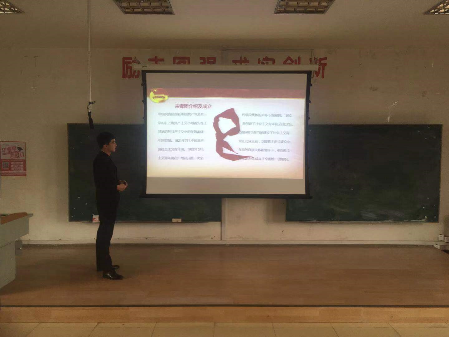随后,团总支副书记郭犀群为团员们播放共青团宣传学习视频,带领全体团员学习团的历史和发展过程,增加团员和积极分子对共青团的认识和了解。在学习过程中,同学们积极互动,参与知识问答,学习氛围浓厚。
