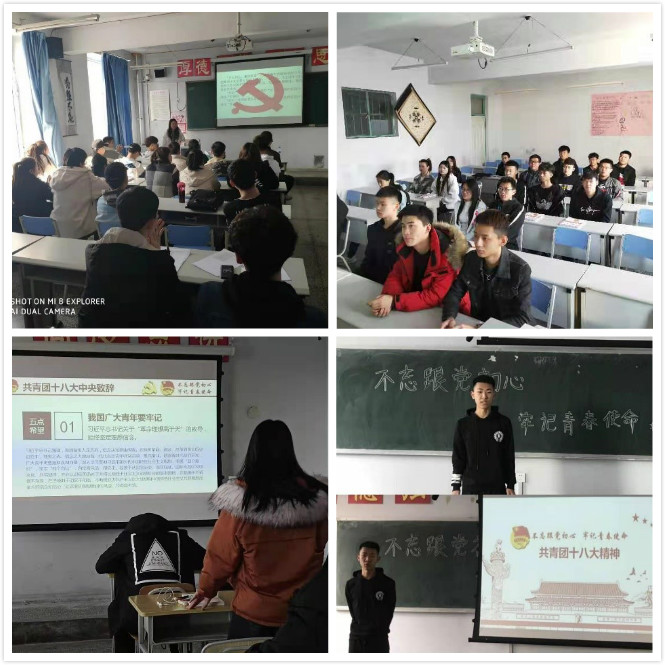 各支部团干部带领全体团员深入学习了习近平新时代中国特色社会主义重要思想和共青团十八大报告,团员青年们对习总书记讲话精神和共青团十八大报告进行了深入学习和激烈讨论。各团员代表纷纷表达同学们对十九大、共青团十八大、新时代、社会主义核心价值观、改革开放、民族复兴、青年使命等的理解。