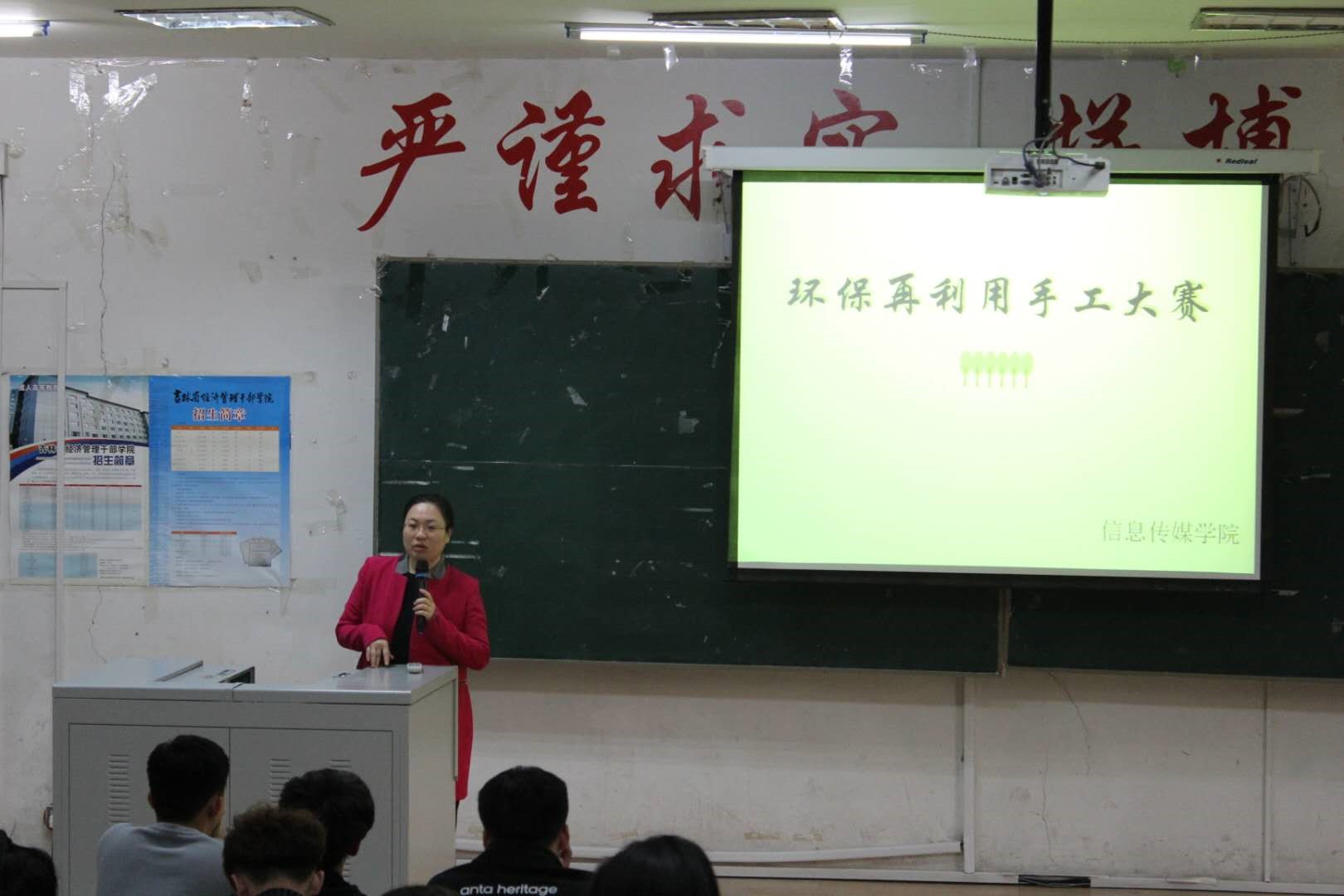 为倡导国家创新、协调、绿色、开放、共享的发展理念,响应习总书记“循环利用是转变经济发展模式的要求”的绿色发展观,增强大学生环保意识,提高学生创新能力和动手能力,4月18日下午16:30,信息传媒学院在A教105室举办寝室文化节系列活动之“环保再利用手工大赛”。我院团总支书记刘庆出席本次比赛,并与我院学生会主席团成员及18级学生代表共同担任评委,我院学生积极到场观看比赛。