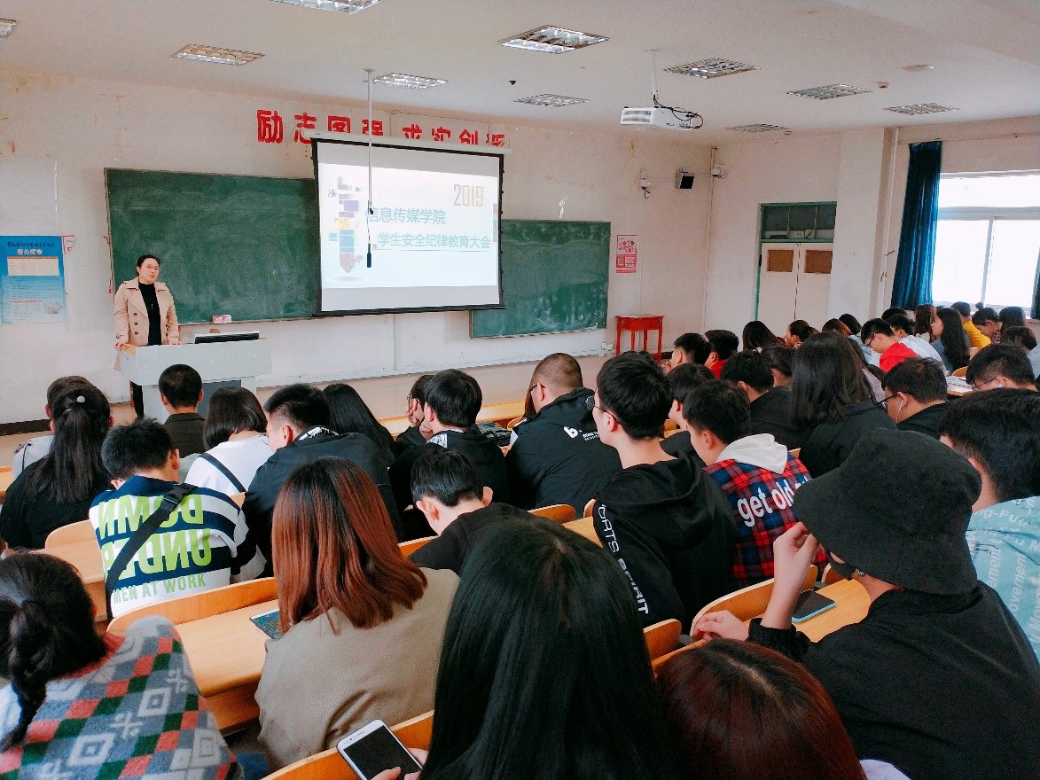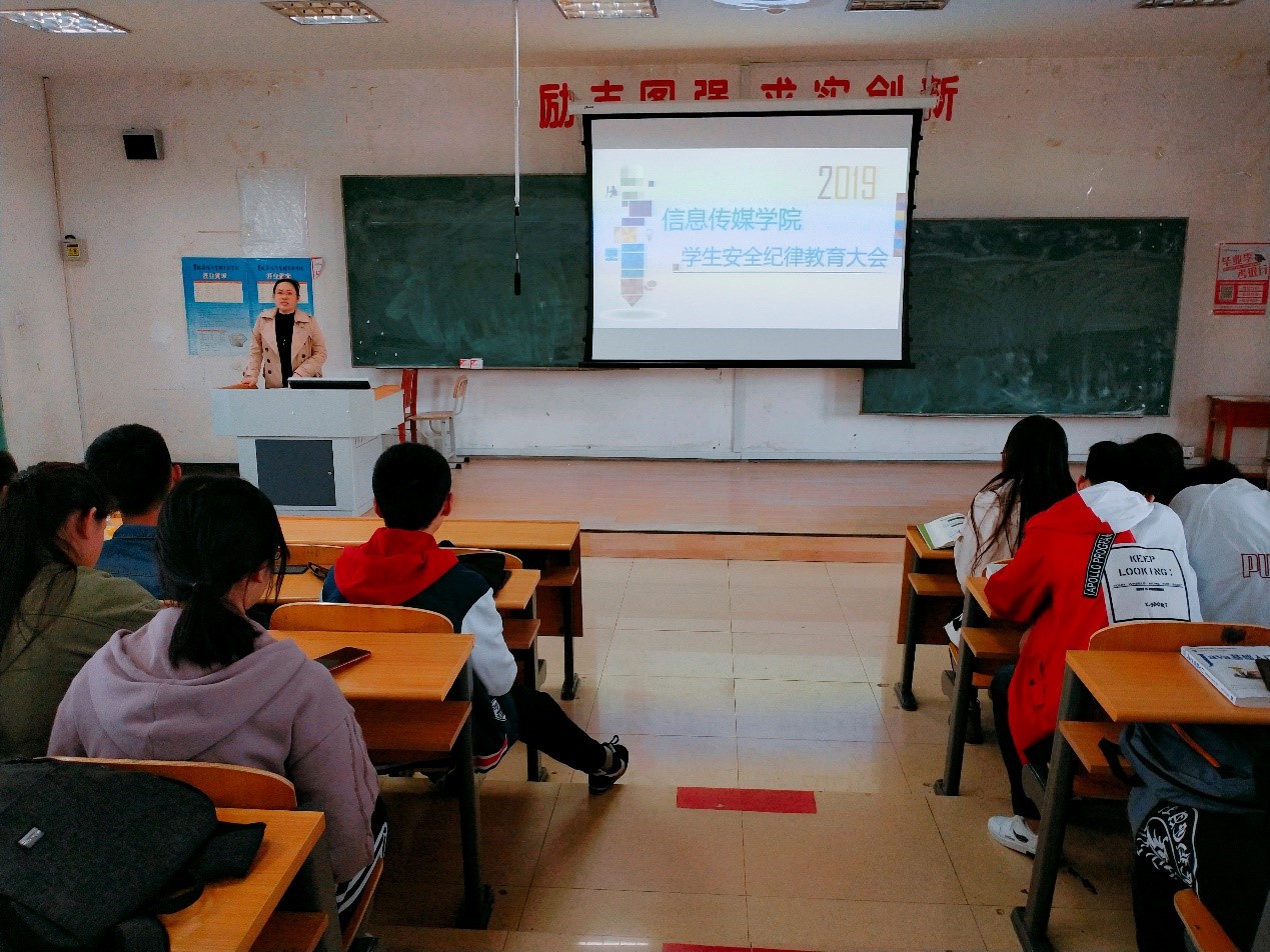 为积极响应“全民国家安全教育日”宣传活动,贯彻落实习近平总书记提出的“总体国家安全观”,牢固树立“四个意识”,提高同学们维护国家安全的法律意识,将国家安全融入学生日常教育活动中,信息传媒学院开展了线上学习“全面国家安全教育日”知识和主题班会等系列活动。4月22日中午,信息传媒学院在院部A教205召开了学生安全纪律教育大会。团总支书记刘庆、大二辅导员迟涵、大三辅导员高莹莹、2018级全体学生、2017级学生干部、2016级在校生参加了此次会议。会议由团总支副书记刘涵主持。