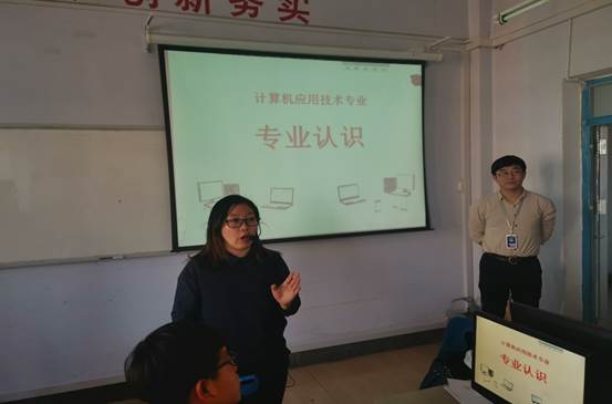 首先,由网络技术教研室骨干教师林鸿发言。林老师重点对计算机应用技术专业的核心课程和未来的就业职位进行了介绍,力求使学生对就业方向和行业发展前景具有初步了解,对专业知识和专业技能产生学习兴趣,尽快明确职业目标并制定与之匹配的学习目标。