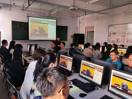 2019年10月16日下午13:00,在院部B教407教室内,信息传媒学院的老师们正在聚精会神地集中学习学院“不忘初心、立德树人、做高素质‘双师型’好老师”专题网络培训的在线课程。