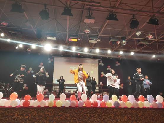 由张耘玮学长和朱晗带领大学生舞蹈团的同学们所跳的“我的英雄梦”更是舞动出了青春的活力,展示出我院丰富多彩的校园生活;吉洪男同学的架子鼓表演气场全开;王帅和邓富元同学的吉他弹唱《都选C+不再犹豫》嗨爆全场;互动游戏环节“击鼓传花”更是把晚会气氛推向高潮。