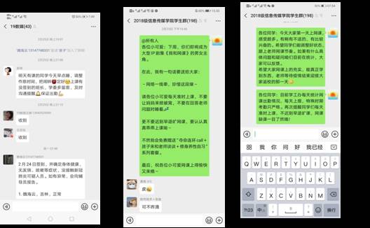信息传媒学院非常重视此次网络教学,专门制定《信息传媒学院2019-2020学年第二学期网络教学组织与管理工作方案》,成立分院网络教学专项工作领导小组和分院网络教学督导小组,网络授课第一天,督导小组成员纷纷进入各个班级,督查老师授课情况和学生学习情况,各督查老师均反映授课老师都能随机应变解决线上课堂出现的问题,都能积极与学生互动,调动学生的学习热情,学生也都能按时进入课堂,积极响应老师,线上教学的效果高于预期效果,希望各位老师能尽施所能,保持网络教学的热情,始终待网络教学如“初恋”。