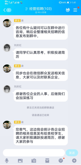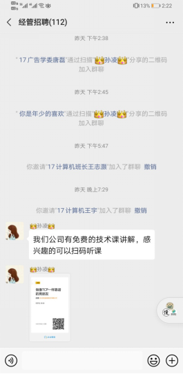 本次招聘会虽然在线上举办,但依然有很多同学积极参与,会后孙凌女士在微信群中继续向同学们分享了在线技术课程,帮助同学们强化技能、拓宽能力。信息传媒学院将继续积极与企业合作联结,组织开展专场招聘活动,躬耕学生的成长与成才!