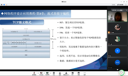 王雪老师从TCP协议的传输特点、TCP报文格式、TCP连接的建立与关闭三个方面的内容进行了对TCP传输协议的讲解。试讲过程条理清晰、语速适中、抑扬顿挫、始终保持高涨的热情,讲课环节完整,时间掌控的合理,基本功非常扎实,得到了全体听课老师的一致好评。