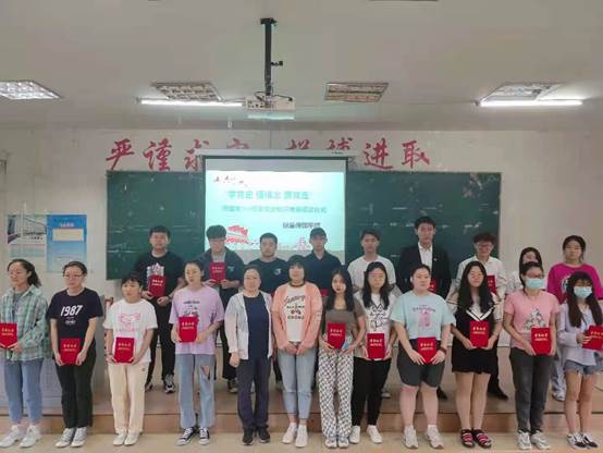刘庆老师在颁奖仪式后作总结讲话。她表示,此次党史知识竞赛将教育与竞赛结合在一起,能够增强同学们学习党史和理论知识的自觉,加深对党的认识,让同学们更加接近党组织,也是一次很好的提升党性修养的机会,同时通过竞赛检验全体同学的学习成效,达到了以赛促学、学思践悟相统一的目的。她指出,希望全体同学通过此次党史知识竞赛的开展,深入学习百年党史,进一步了解我党百年来举世瞩目的历史成就,希望同学们通过学习进一步坚定理想信念,继承和发扬党的优良传统,积极向党组织靠拢,真正做到学党史、感党恩、听党话、跟党走。