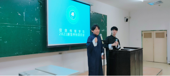 9月21日下午13:30分,信息传媒学院2021年中秋联欢会,在A教四个会场隆重举行。信息传媒学院党总支书记周雪娟、院长刘庆红、团总支书记刘庆、辅导员郝志楠、孙冲、董诗化、王雪走进各个联欢会场,与全体2021级新生和学生会干部欢聚一堂,共庆佳节。联欢会在热烈的气氛中拉开帷幕。