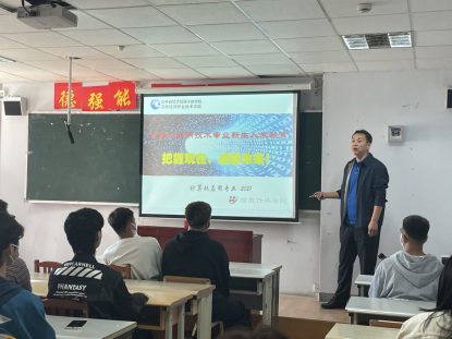 为了帮助2021级新生尽快适应大学生活,了解计算机应用技术专业的现状和未来发展前景,帮助学生明确学习目标、做好大学阶段的学习规划,尽快融入计算机应用技术专业,9月14日上午9:40分,在院部B教412教室,网络技术教研室举办了以“把握现在,成就未来”为主题的计算机应用技术专业新生专业认识和入学教育活动。