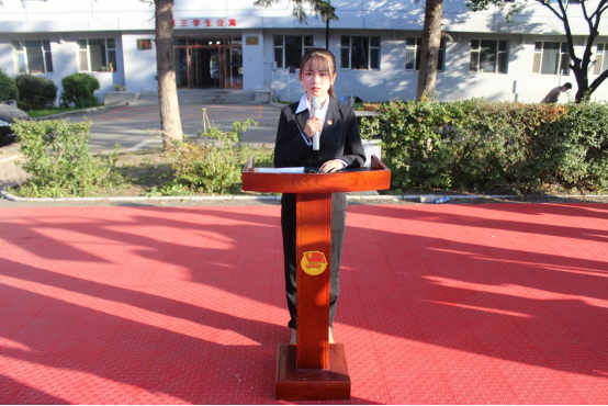 学生代表周奇同学进行国旗下的演讲。她表示,伟大的时代需要青春奋斗,伟大的事业呼唤青年担当。作为当代大学生,应志存高远、脚踏实地,传承中华民族的光荣与梦想、使命与担当,以奋斗之我、以青春之我,燃烧青春激情、追逐青春理想。