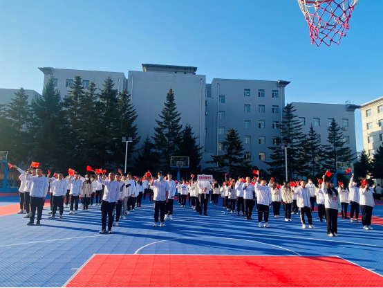 最后,全体师生共同唱响《歌唱祖国》,师生们挥舞着手中的国旗,庆祝祖国母亲72岁生日,用歌声表达对祖国母亲的深厚情感,用青春彰显奋斗的底色,向祖国献礼,向祖国告白。