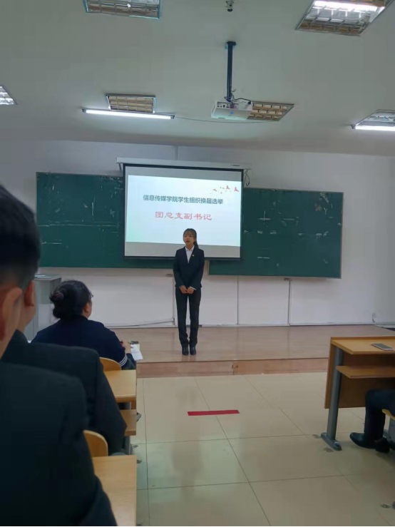 为进一步强化我院团学组织管理,发挥学生组织在学生管理中的积极作用,提升学生的自我管理水平,拓展学生自治管理能力,加强学生干部队伍建设,促进学生组织工作的全面有序开展,10月13日,信息传媒学院在A教105隆重举行2021届学生组织换届选举大会。团总支书记刘庆老师,辅导员董诗化、王雪、孙冲老师、院学生组织全体成员出席了此次大会。大会由刘庆老师主持。
