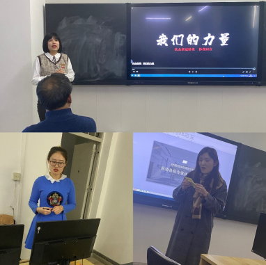 然后由试讲团队《信息技术基础》课程组的3位教师进行试讲与教学设计的展示。本次活动采用了学院教学能力比赛的要求模式进行,其中孙冲老师负责课程设计,王雪老师负责课堂展示,張飛飛老师负责总结反思,授课内容为新冠肺炎疫情数据的图表分析。3位教师生动形象的进行了各自负责内容的讲授,既展现了扎实的理论功底,又展示了良好的授课技巧,在场的老师们认真聆听并做记录。