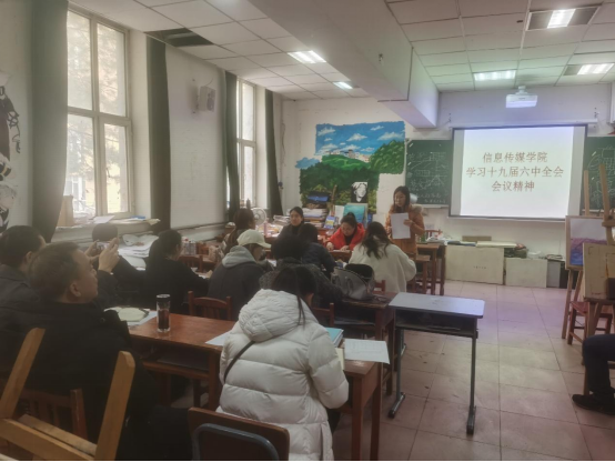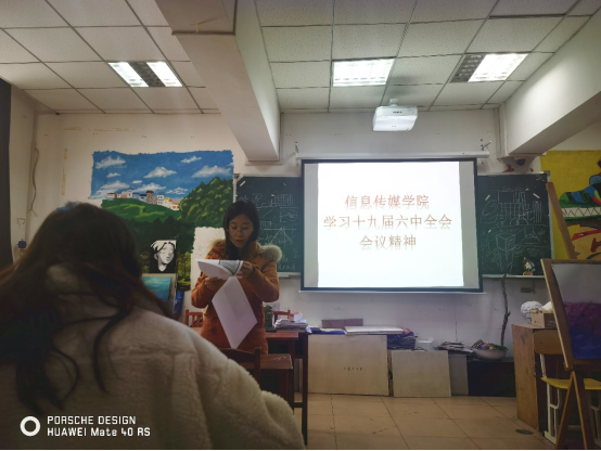11月17日,信息传媒学院全体教师在C教202教室开展学习十九届六中全会精神学习研讨会。
