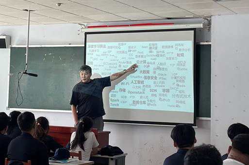 果大军老师的讲座围绕同学们最感兴趣的三个话题“干什么”、“学什么”、“怎么学”展开。首先,果老师介绍了计算机应用技术专业的几个就业方向,并以专业历年的优秀毕业生为例,让同学们了解到了专业良好的就业前景,激励新生们为了美好的未来而拼搏奋斗。然后,果老师重点对专业的人才培养方案、课程设置以及实践教学体系进行了介绍,力求使学生们对本专业的人才培养模式和培养过程有初步的了解,让学生在刚入学就对本专业的课程有一个系统的认知,明确学习目标,对专业知识和专业技能产生学习兴趣。最后,果老师向同学们强调了参加大赛和考取职业资格认证的重要性,并以在校生参赛取得的优异成绩以及考取的各类职业资格认证来鼓励新生多参加专业活动、竞赛等,丰富自身体验,充实自身经验,增强未来就业综合实力,成为栋梁之材。