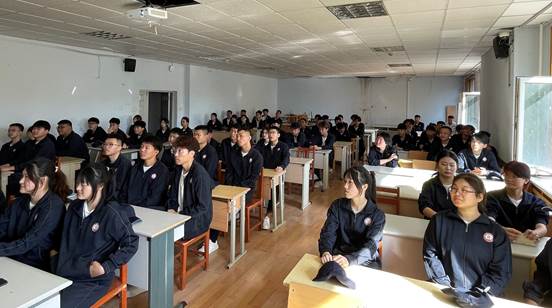 全体新生同学身着军训服装,坐姿整齐。在讲座中,学生们聚精会神地听讲,朝气蓬勃的面孔上充满了专注和憧憬,眼睛里闪烁着求知的光芒,此次讲座为专业课程的学习开启了奋进的序曲。