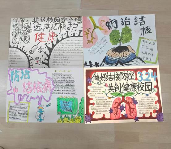 2. 开展以主题为“共筑校园安全墙,远离结核护健康”手抄报比赛:为增强学生对结核病的认知,提升校园健康安全意识,信息传媒学院举办 “共筑校园安全墙,远离结核护健康” 手抄报比赛。活动前期通过班级群、校内公告栏发布通知,吸引众多学生响应。比赛共收到30幅风格各异的作品,同学们有的用色彩鲜艳的卡通形象科普症状,有的深入阐述预防方法。经评委多方面评审,评选出各奖项,优秀作品在校内展览,吸引师生驻足。此次比赛为学生提供展示平台,以生动方式普及知识,增强防护意识,营造良好校园健康氛围 。