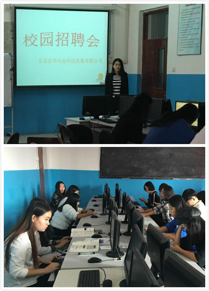 招聘会由软件技术专业张海鸥老师主持,张海鸥老师首先介绍了公司的基本情况,接着介绍了招聘岗位的具体要求,最后介绍了公司入职后提供的福利待遇。宣讲结束后,招聘会进行了90分钟的上机考试,所有参会的同学都非常珍惜这次机会,这也成为检验同学们三年学习成效的最好方式。校园招聘会结束后,张海鸥老师回收了所有的试卷,并将结果发送给北京宏华兴业科技有限公司人力资源部。