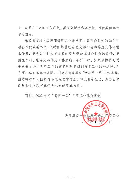 由学院团委提报的工作案例《提高政治站位 坚持多措并举 推进新时代"青马工程"高质量发展》,被共青团吉林省直属机关工作委员会评为"每团一品"优秀团青工作案例。