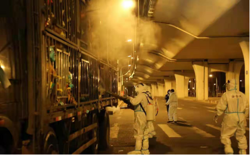4月1日夜里11点,校园门口一片忙碌,打破了多日来校园的静谧。朝阳区教育局捐赠的1万多斤蔬菜及时抵达,安全处的5名同志和后勤处的3名同志第一时间赶赴现场,进行蔬菜的消杀和搬卸工作。