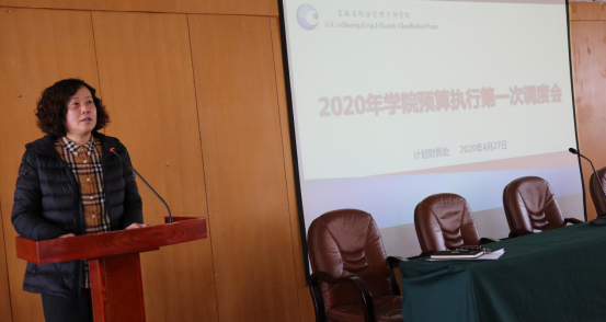 首先,计划财务处处长林冬梅结合财政厅文件精神从三个方面做出说明并提出要求。一是关于2020年学院各项支出预算方案的解析与说明。强调各部门要认真阅读支出预算方案通知中的4个附件,按附件2-政府采购项目预算执行程序组织项目实施,并认真填写附件3-专项预算执行进度表,为预算执行绩效考核提供依据。二是各部门要加强支出管理,发挥资金使用效益。根据财政厅《关于积极应对新冠脑炎疫情影响 切实加强预算管理的通知》(吉财预[2020] 244号)文件的相关要求。各部门要积极调整优化支出结构,合理把握支出安排顺序,从严从紧管好经费支出,进一步压减非急需、非刚性支出,保障疫情防控期间民生稳定发展。三是要加强预算执行管理与监督。由于财政部门将通过预算执行动态监控系统,对支付信息进行判断、核实、处理,并及时纠正违规支付行为,防范财政资金支付使用风险,强化预算支出执行监管。因此,林处长强调,各部门在办理各项支出业务时,相关手续一定要齐全,业务一定要合规,票据一定要真实、合法,避免出现违规行为。