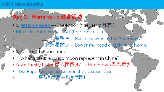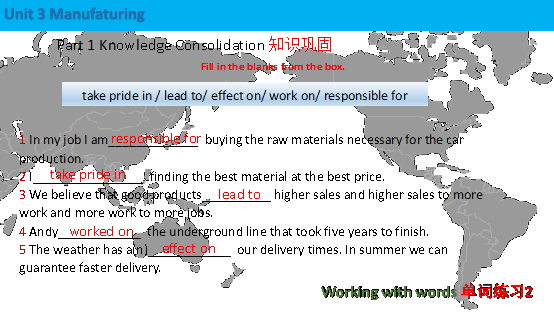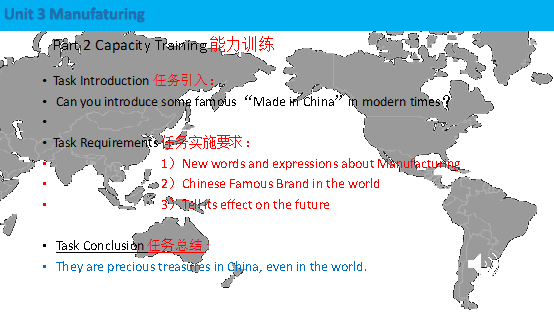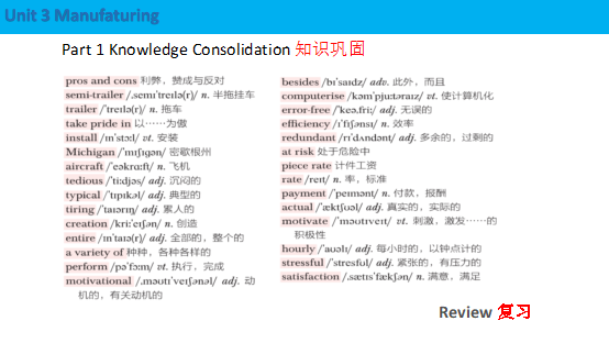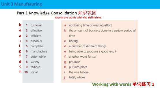 1.知识目标:掌握与制造业相关的单词及表达法;