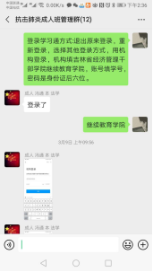 张皓同志还担任继续教育学院临时辅导员的工作,疫情当前学院需要了解每个学生的动向及身体状况,需要辅导员每天统计他所管理的学生信息上报分院。他党员志愿者工作回家后还要进行统计上报学生信息工作对于没及时上报的同学打还要电话咨询情况,督促及时上报,严格执行“日上报”、“零报告”制度。3月初,成人班的线上教学陆续的开始了,他把课程表传给了每名同学,每天督促有直播课的同学上课签到,有网络课程的抓紧学习。他还接到了全国各地的学生打来电话咨询软件的使用和课程的安排等等。
