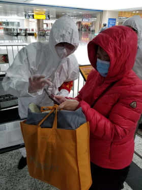 “您好,进站请您扫码登记”、“我帮您检测一下体温”、“登记完成,请您到前面配合一下安检”、“谢谢您的配合”,这是吉林省经济管理干部学院继续教育学院张皓同志这些天在西客站地铁站口当志愿者说的最多的几句话。