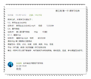 充分做好学情分析,根据学生已有的知识储备安排预习内容,标明重难点,提醒学生关注。鼓励学生预习时提出问题,带着问题听课。要求学生做好笔记,并拍照分享,通过做笔记的方式促进思考。通过平台中的学生在线学习数据,如在线时间、有无回看等信息及时了解学生学习状态。